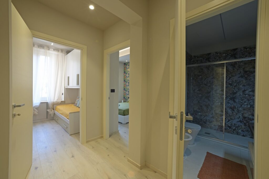 ALASSIO : Trilocale al Primo Piano in palazzina con ascensore, in pieno centro città a soli 100 mt. dal mare, composto da Ingresso, Soggiorno con angolo cottura con accesso sul balcone, Camera matrimoniale con accesso sul balcone, Studiolo, Bagno. Termoautonomo con pompa di calore caldo/freddo. Arredato su misura con cura nei minimi dettagli, con armadiature a muro ed eleganti carte da parati. Balconi luminosi
